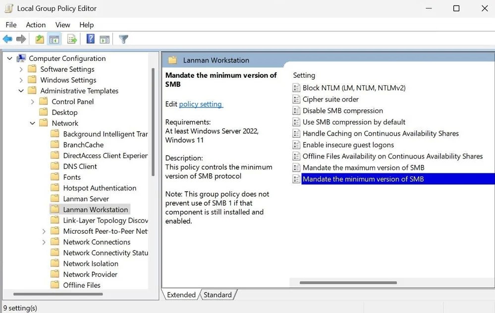 Starting with Windows 11 Insider Preview Build 25951, admins can configure Windows to block sending NTLM data over SMB on remote outbound connections using Group Policy and PowerShell.
