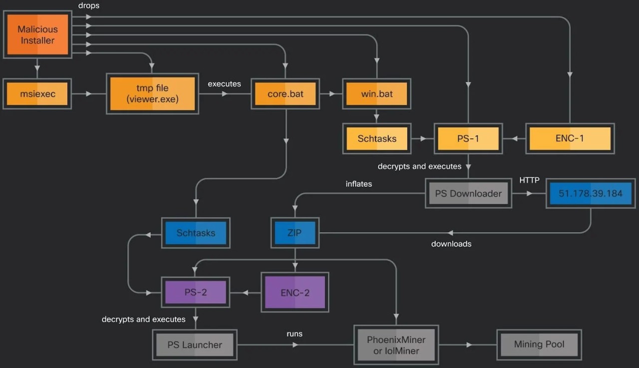 However, these installers include hidden malicious scripts that infect downloaders with remote access trojans (RATs) and cryptomining payloads.
