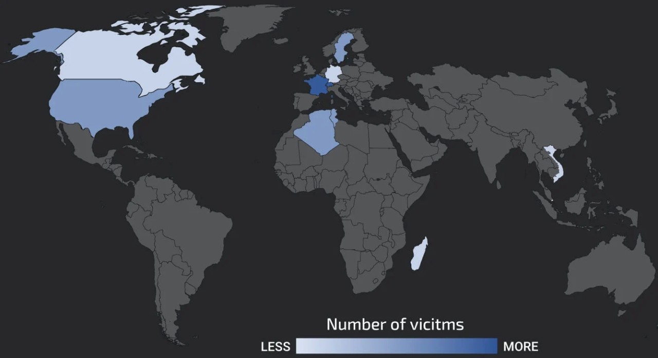 Currently, most of the victims are located in France and Switzerland, while there's also a notable number of infections in the United States, Canada, Germany, Algeria, and Singapore.